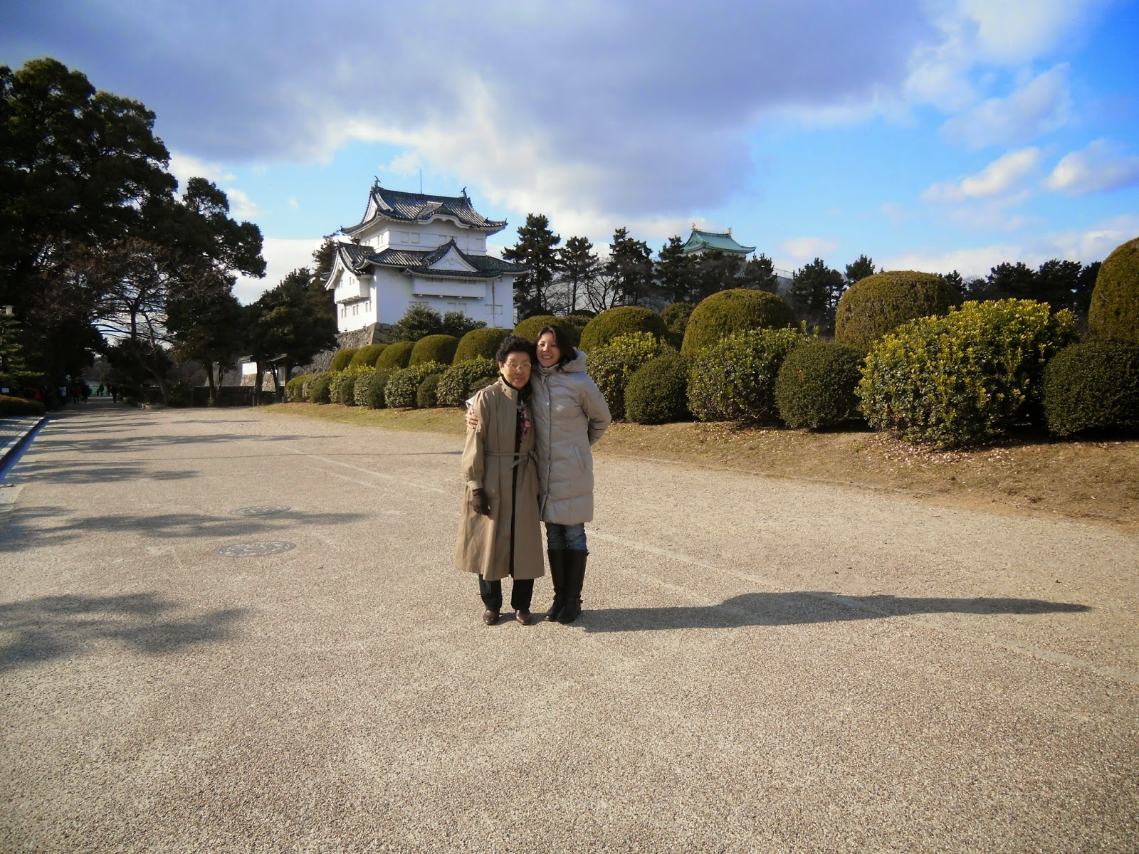 Primeiro visitei a cidade de Nagoya, a quarta maior cidade do Japão. Lembra uma cidade do interior mas o centro tem a badalação de uma cidade grande. Lá conheci o famoso Castelo de Nagoya, que durante a Segunda Guerra Mundial foi destruído por um incêndio. Toda sua estrutura foi reconstruída e hoje é aberta para visitação. É possível apreciar vários objetos de valor que sobreviveram ao incêndio, além de poder descansar em seu belo jardim.